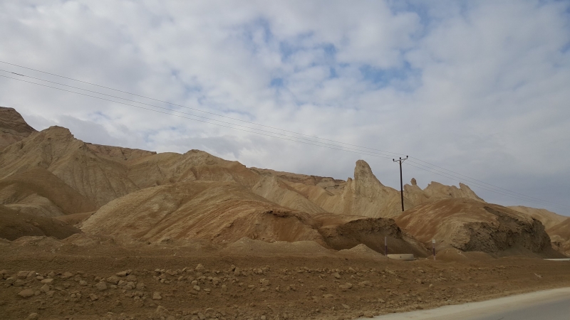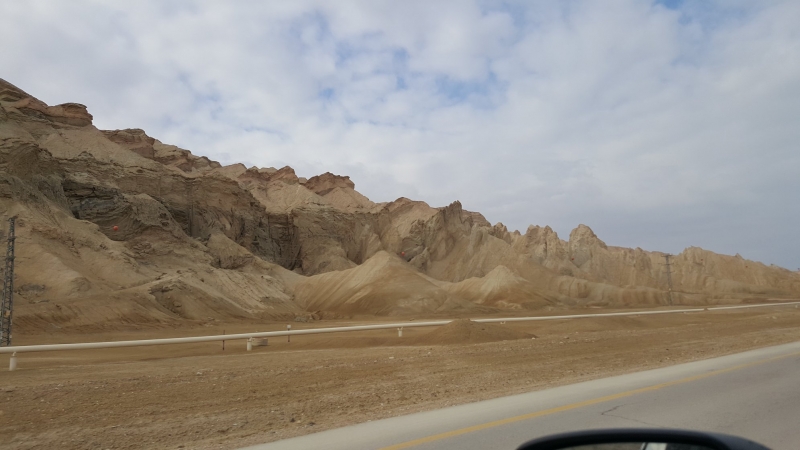 Biblical Moment No. 33 of Andy’s Spiritual Journey to Israel & Palestine is a drive-by don’t dare to stop experience of Sodom and Gomorrah. In a day that I woke up in Eilat on the Red Sea and rested my head in Neve Zohar on the Dead Sea and saw Timna Park and Masada National Park in between I did not slow down as I passed Mount Sodom. There were people there obviously taking a hike up to the top but not me! No chance I want to become a pillar of salt like Lot’s wife forever located at the base of the Dead Sea!