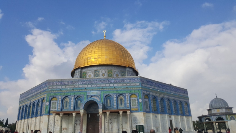 The Dome of the Rock (Qubbat As-Sakhrah) is the spot from which the Islamic prophet Muhammad ascended to Heaven accompanied by the angel Gabriel. For Jews and Christians this stone is the site where Abraham prepared to sacrifice his son Isaac (Genesis 22:1-19).