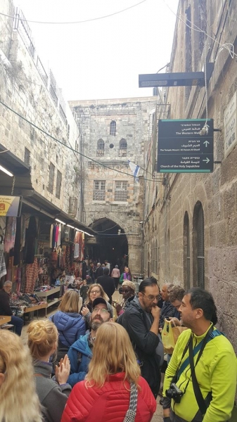 Now to come back for a third time and take an amazing tour that started at the Jaffa Gate and took us along our winding way through the nooks and crannies of a place 40,000 people call home. First through the Armenian and Jewish Quarters then emerging at the Western Wall and upwards to the Dome of the Rock. Down through the Muslim Quarter we found the Via Dolorosa which led us through the Christian Quarter to the Church of the Holy Sepulcher. Inside was Calvary and the Empty Sepulcher (Tomb)–where Jesus rose from the dead—the Cornerstone of Christian faith.