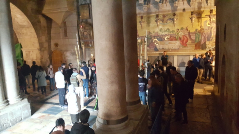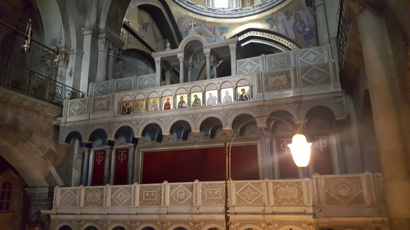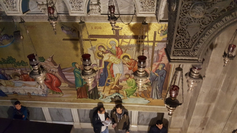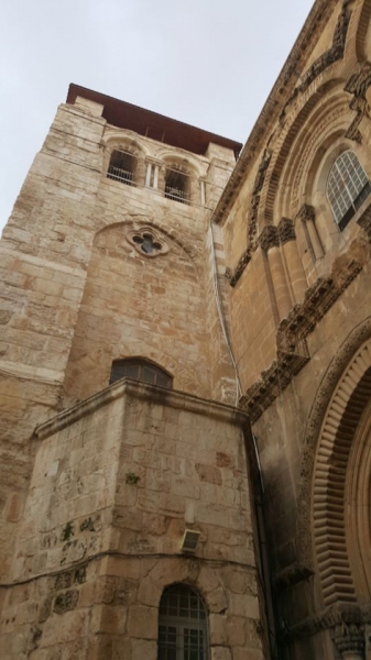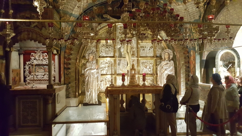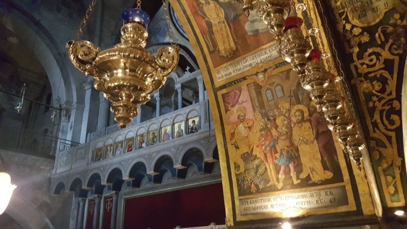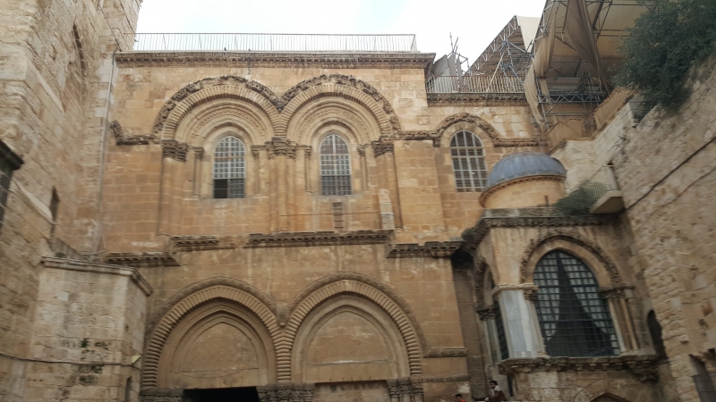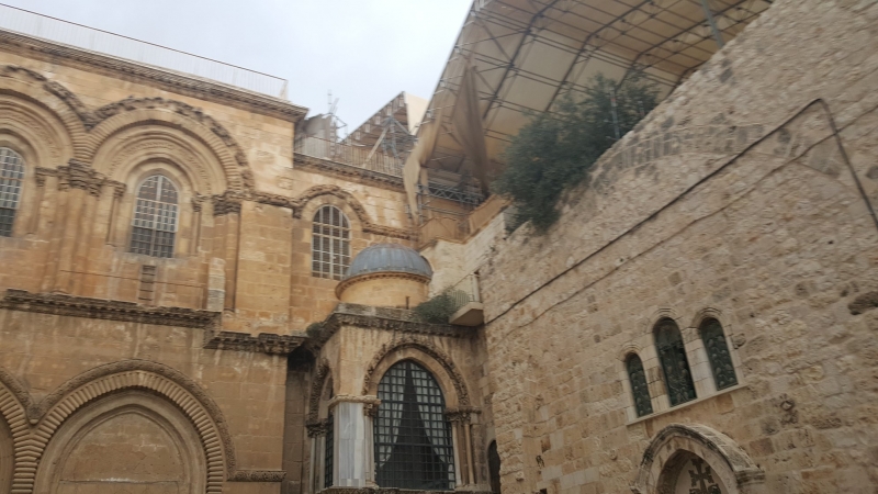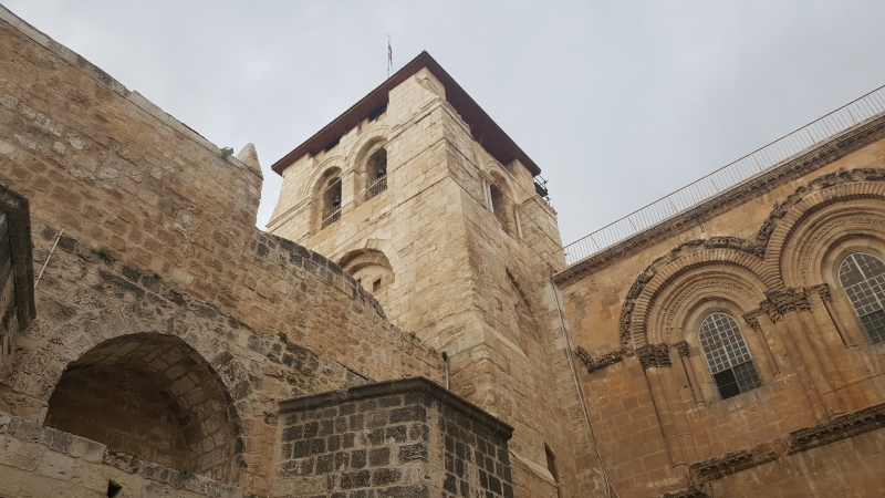 The Church of the Holy Sepulchre contains the two holiest sites in Christianity: the site where Jesus was crucified at Calvary (Golgotha) and Jesus's Empty Tomb where he was resurrected from the dead.