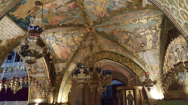 The Church of the Holy Sepulchre contains the two holiest sites in Christianity: the site where Jesus was crucified at Calvary (Golgotha) and Jesus’s Empty Tomb where he was resurrected from the dead.