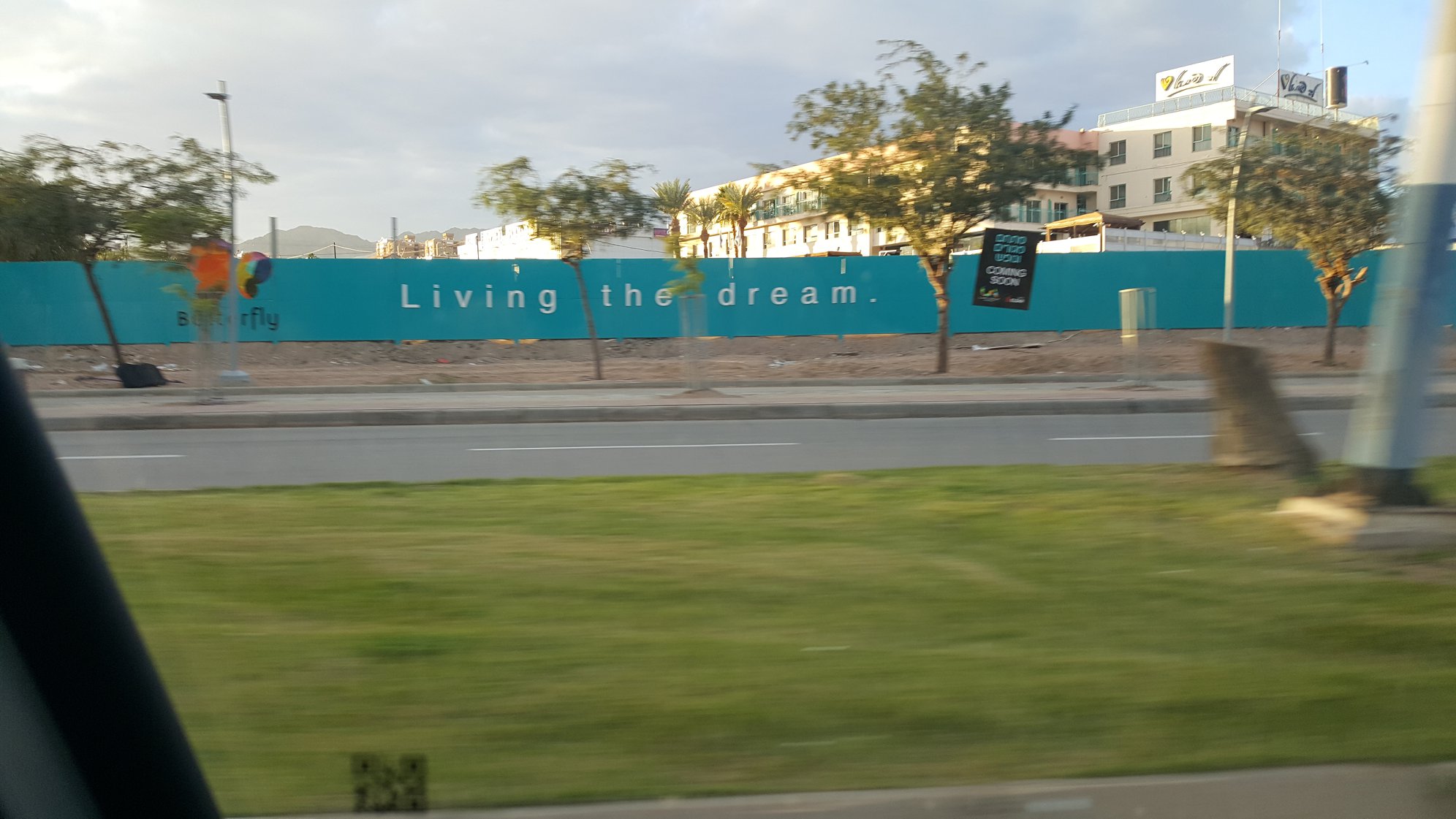 So comfortable could have taken a nap but needed to head north along the shore to find the Jordan border. Past the planned Eilat community with the airport downtown in the heart of it all! Into the land of date palm tree plantations this Israel/Jordan border was an open and peaceful one.