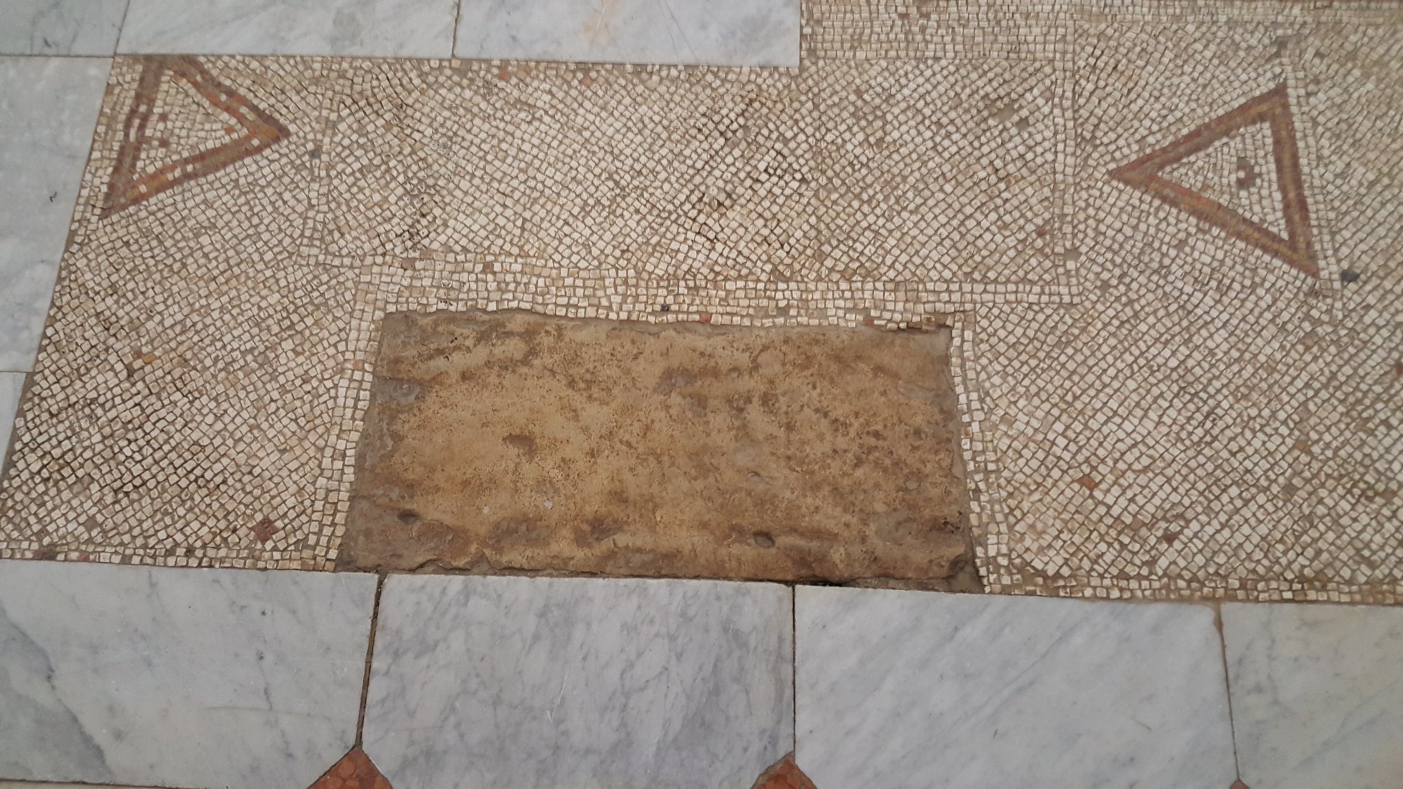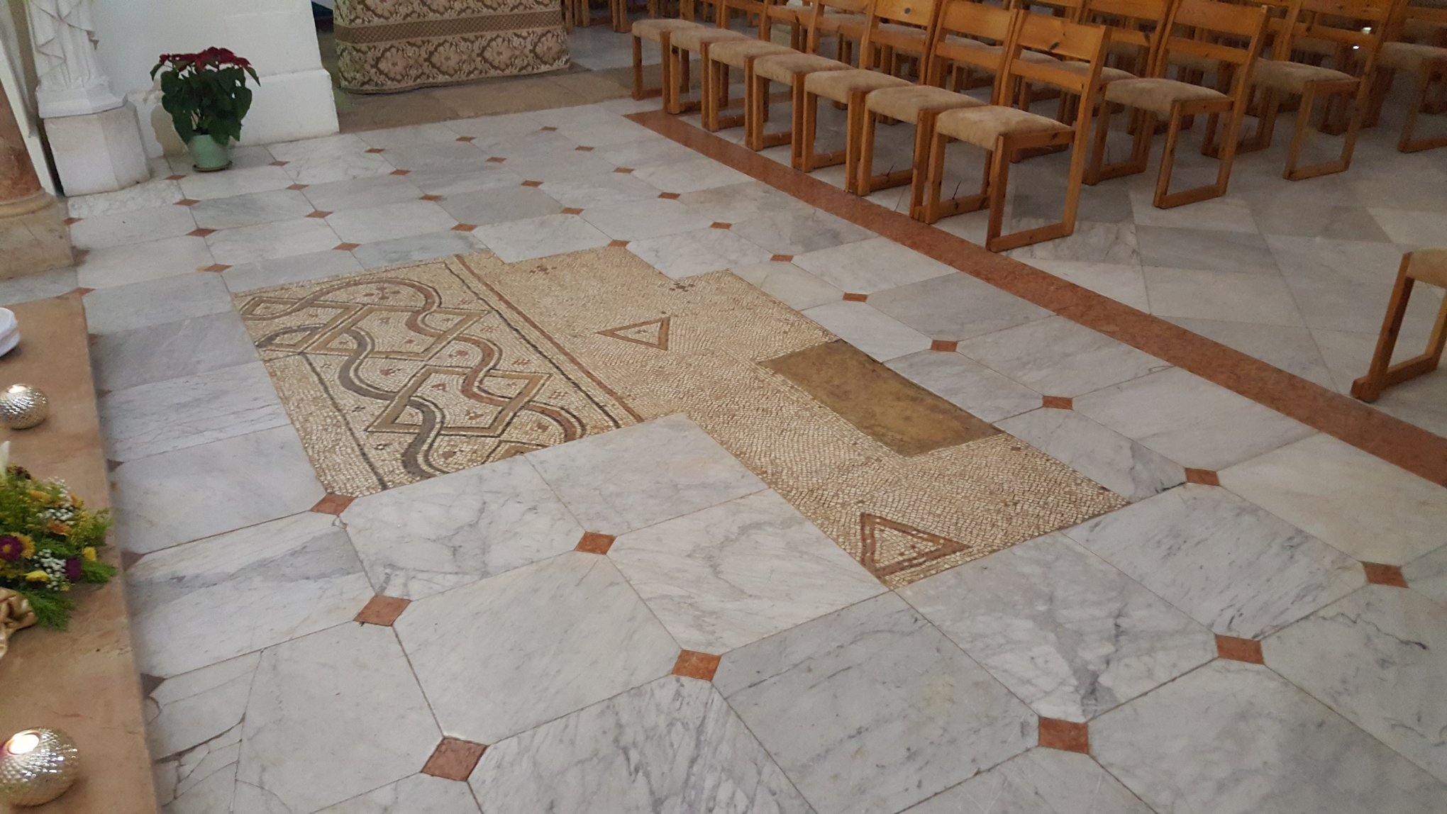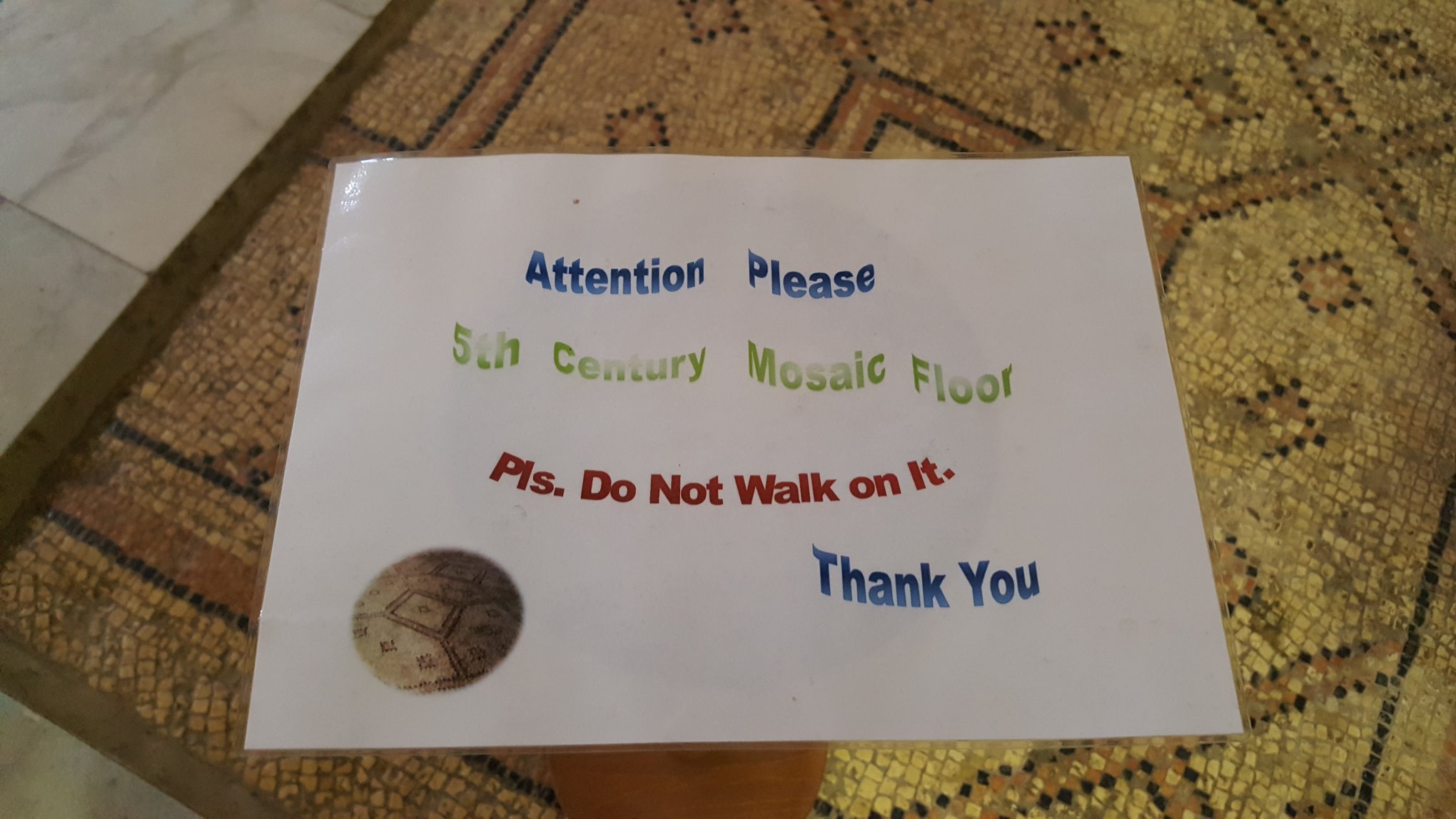 Holy Ground indeed plus a large, oversized Statue of the Blessed & Holy Mother holding Baby Jesus! The Virgin Mary rendition of Christ the Redeemer in Rio de Janeiro! Wow, an intact 5th Century mosaic floor! No, I did not walk on it. I obeyed the sign! Thank you Sister for the beautiful tour of the Church of Notre Dame.