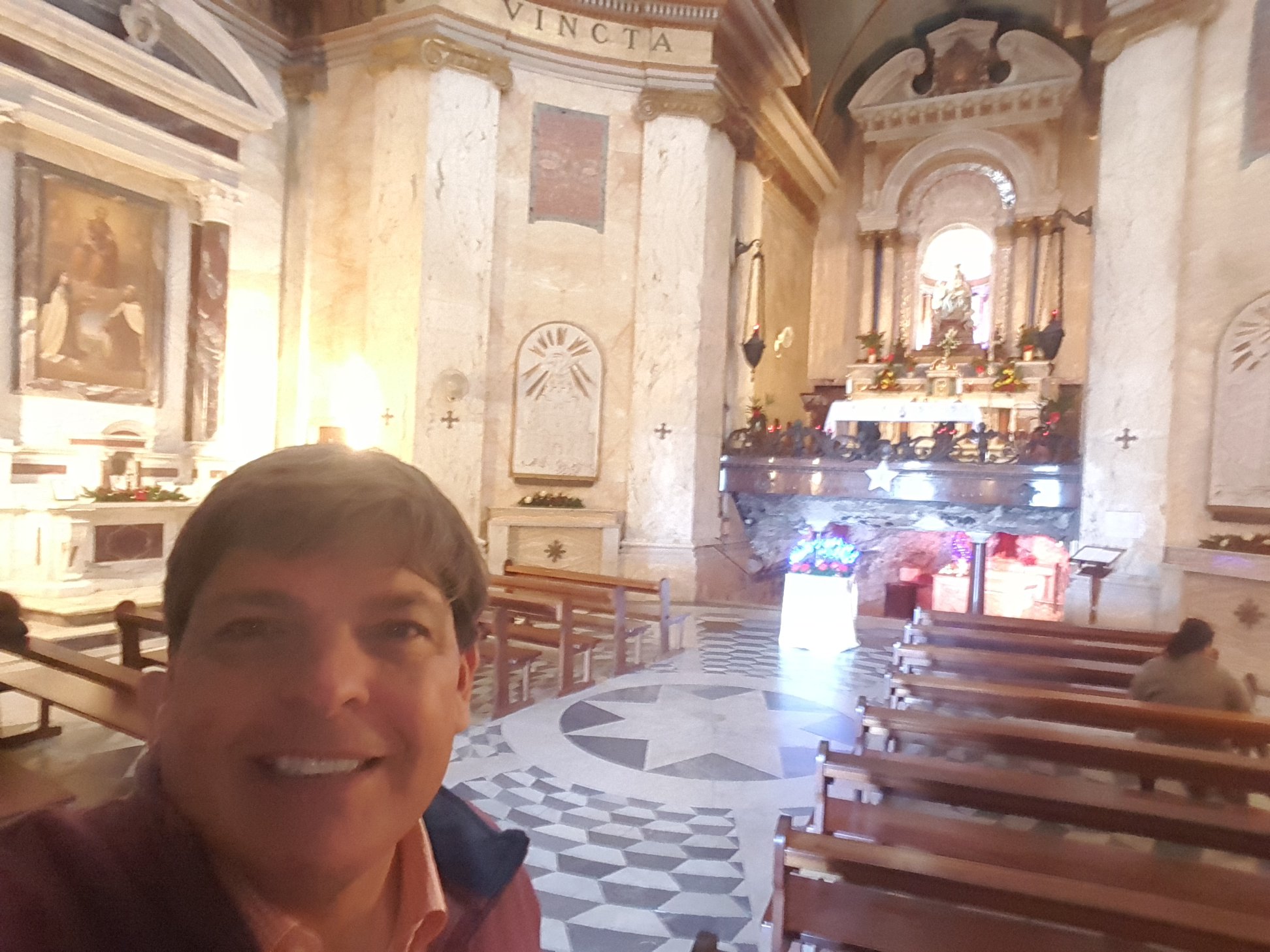 I was very interested in seeing the Stella Maris Monastery right across the street! Also called Our Lady of Mount Carmel, it is a 19th-century Carmelite monastery. It all started right here on the slopes of Mount Carmel in the 12th century with religious hermits (my kind of people) began to inhabit the local caves imitating Elijah the Prophet. Fast forward to 1836 when the current church and monastery was opened. Three years later Pope Gregory XVI bestowed the title of Minor Basilica on the sanctuary, and it is now known “Stella Maris”, meaning Star of the Sea. My Roman Catholic parish back in Ponte Vedra Beach is Our Lady Star of the Sea too! Just a different sea!