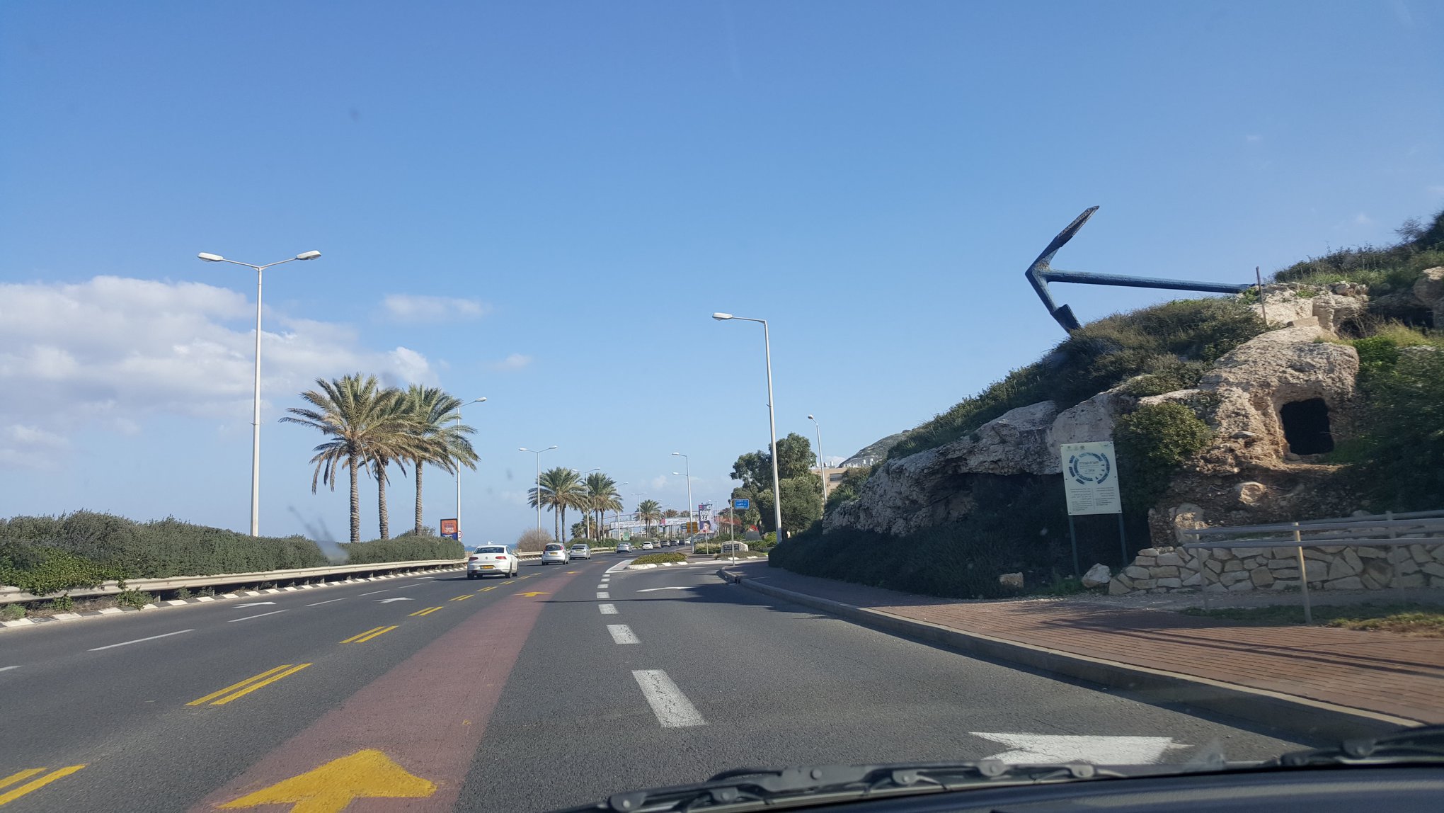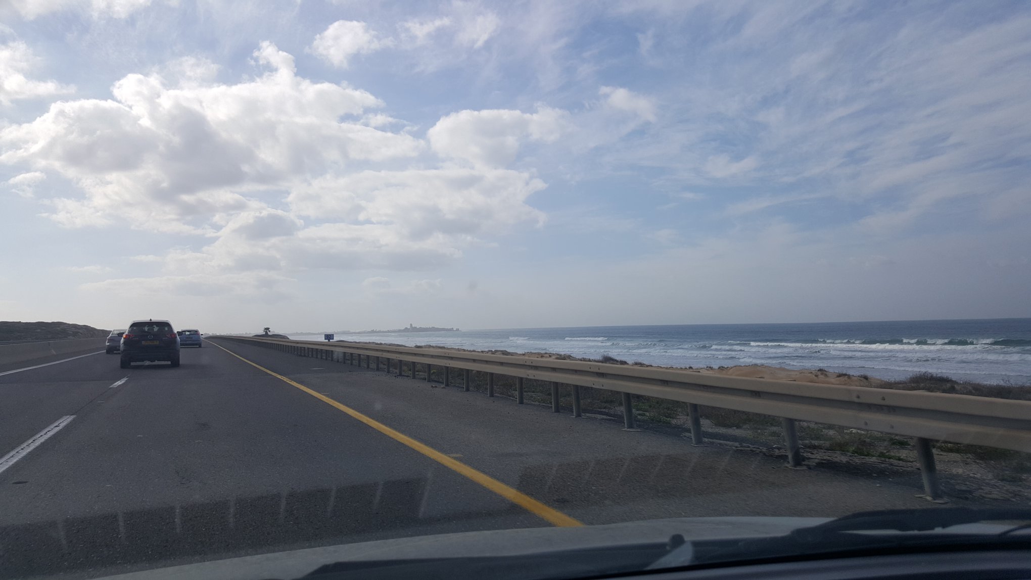 I follow signs to Haifa, but find myself on a main road heading down to the sea. I see the Mount Carmel National Park proper but it is not on a mountain top. Lesson learned is to know exactly what you are looking for and have a GPS destination too. I see a sign for Tel-Aviv and quickly find my self on Route 2 heading South. I know where I am going—to Tel-Aviv then East to Jerusalem! At least that is where my bed is. Who knows what I will find in between!
