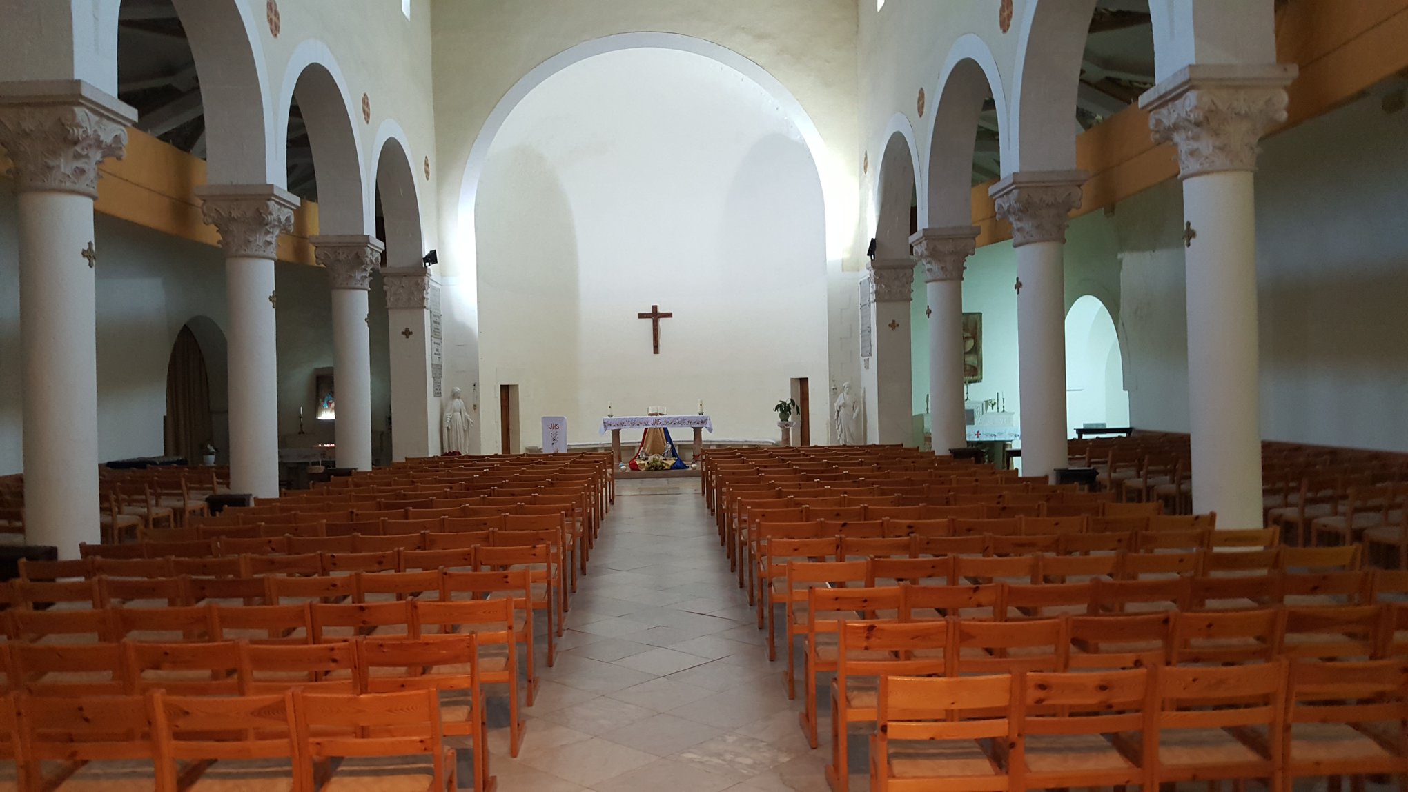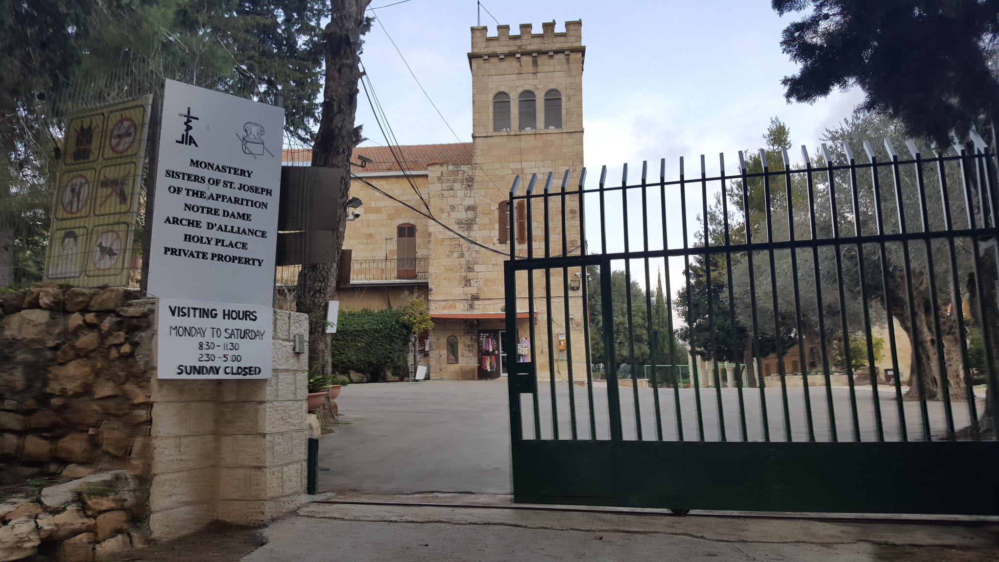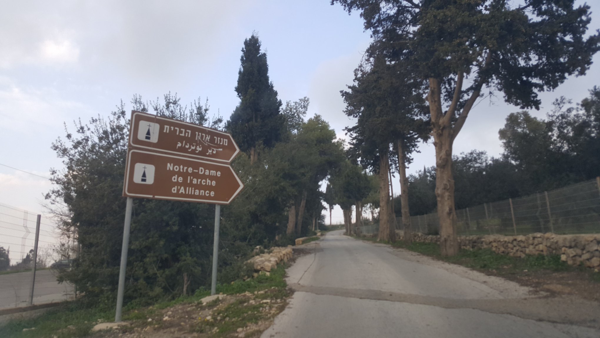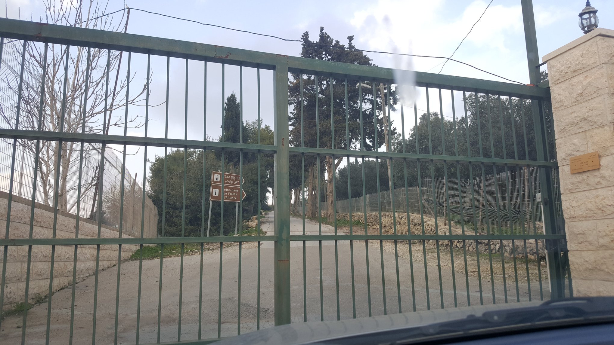 So I drive on entering Abu’Gosh (Emmaus) proper and see a sign for Notre Dame de L’Arche d’Alliance. Having taken three years of French in middle school I have no idea what this means but I reckon that it is a spiritual place that may interest me and help me seek to find Jesus on the Road to Emmaus, albeit two-thousand plus years late!